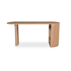 Full of natural appeal in solid oak, the Theo collection features a curved, minimalist design adaptive to modern homes and contemporary lifestyles. Fashionable and functional, it embodies our commitment to craftsmanship and timeless design. Spacious with 3 open shelves, this desk is a handsome, practical office solution.