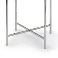 All the elements of this unique table come together perfectly: the intricate inlaid bone, the soft shape, and nickel legs, blending old-world style with a modern, mixed material sensibility. Use it to round out a contemporary arrangement in sophisticated style or to accent a modern ensemble.