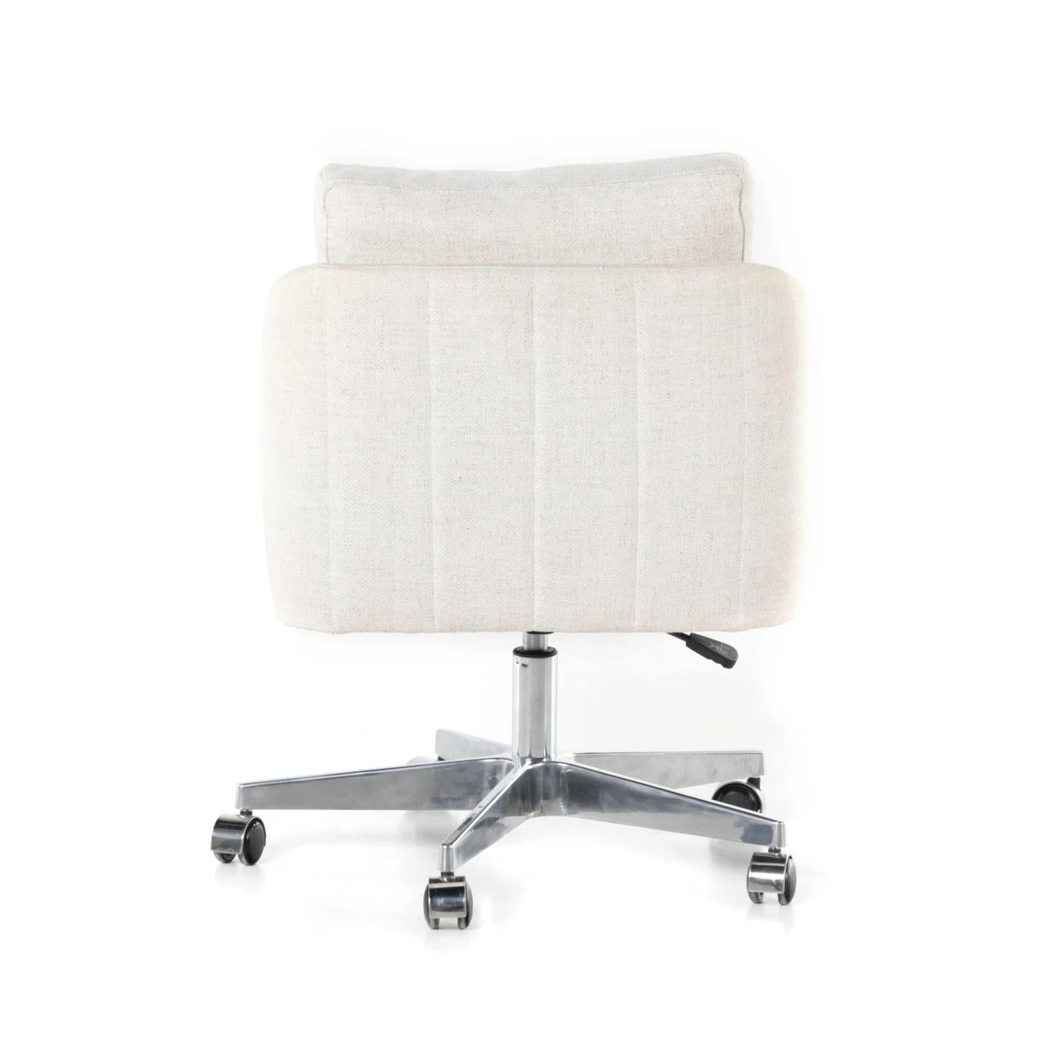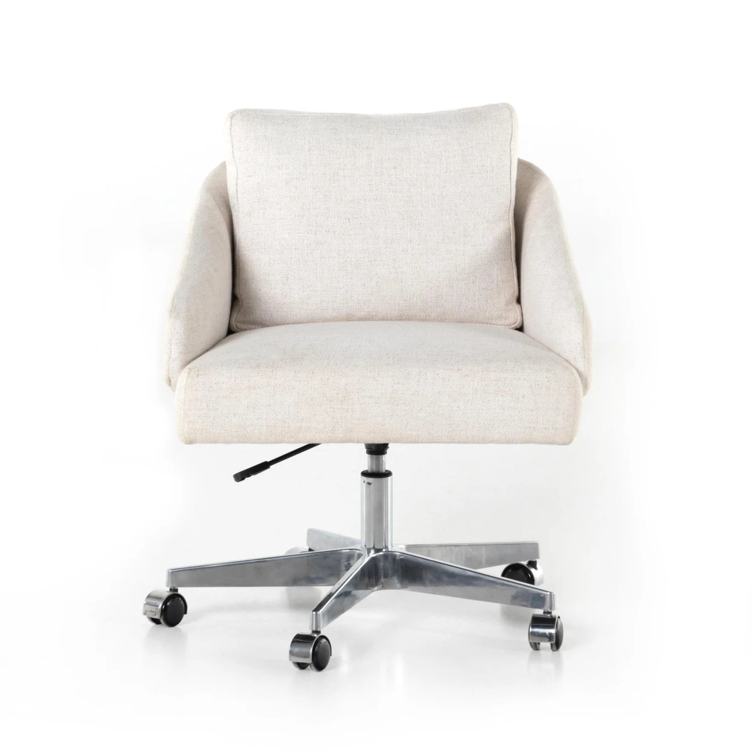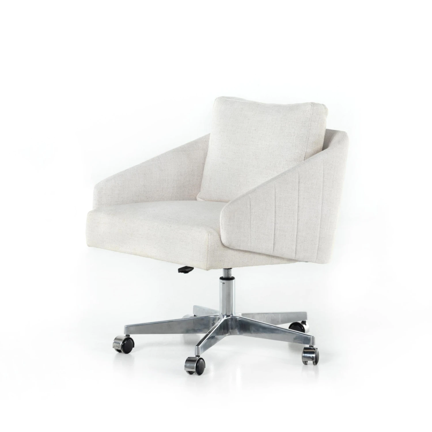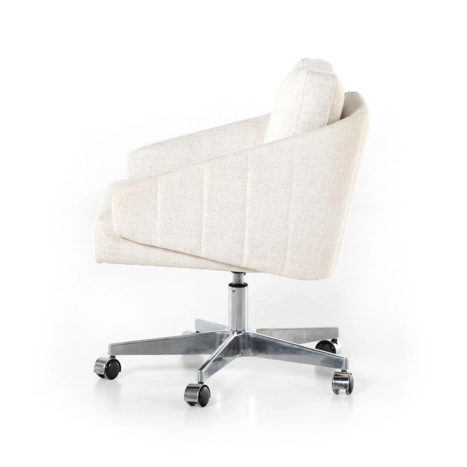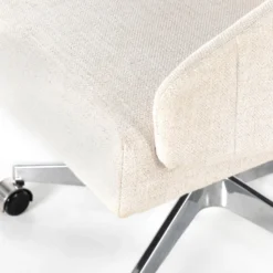 Everything needed to work in style. A nickel-polished aluminum base features casters for ease, with plush, angular upholstered seating in a versatile off-white. Height adjustable. Performance fabrics are specially created to withstand spills, stains, high traffic and wear, ensuring long-term comfort and unmatched durability.